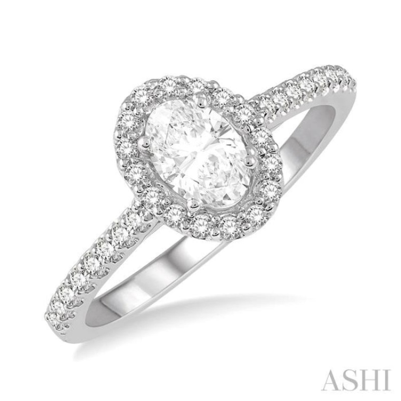 3/8 Ctw Diamond Ladies Engagement Ring with 1/4 Ct Oval Cut Center Stone in 14K White Gold