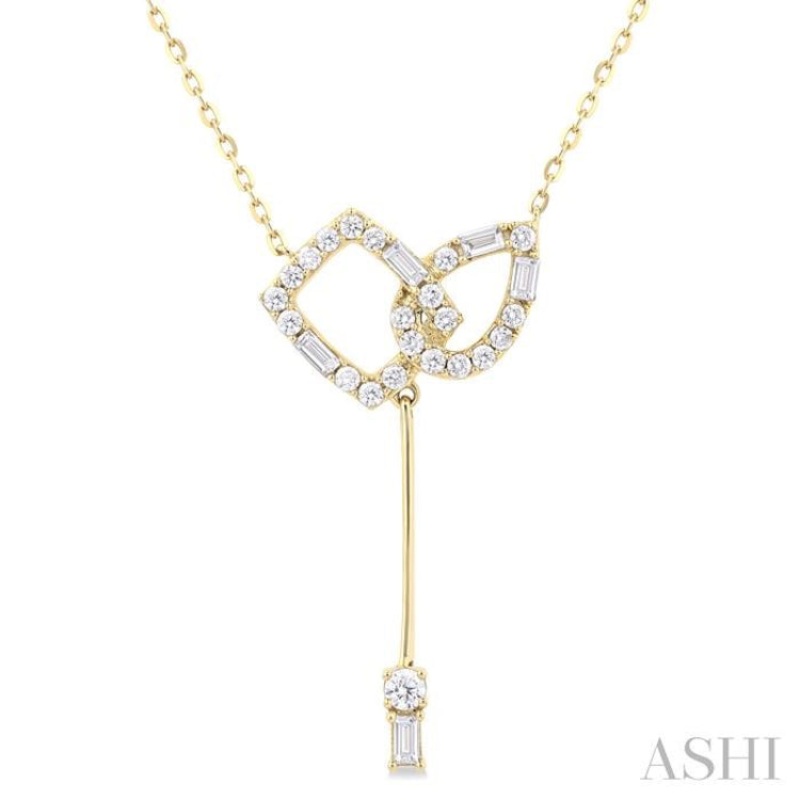3/8 ctw Interlocked Geometric Motif Baguette and Round Cut Diamond Fashion Necklace in 10K Yellow Gold