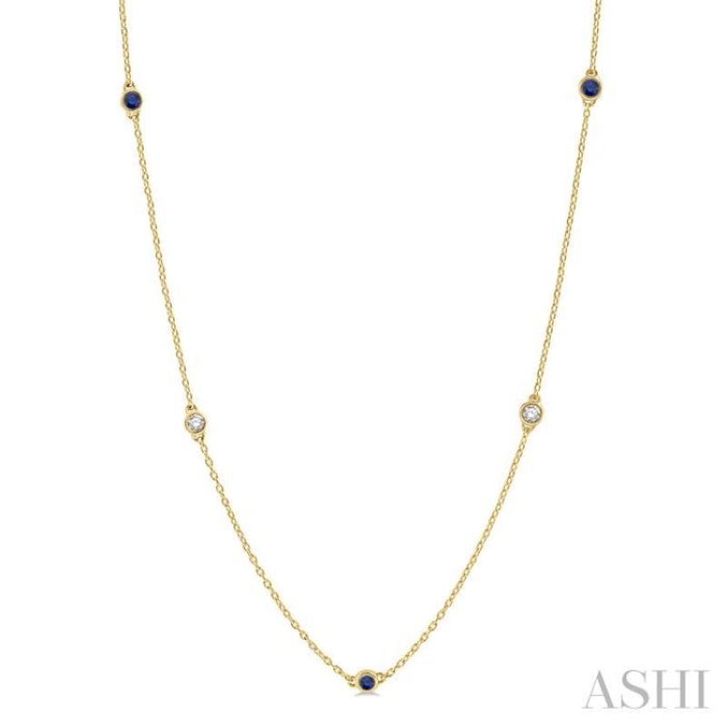3/8 ctw Round Cut Diamond and 2.6MM Sapphire Precious Station Necklace in 14K Yellow Gold