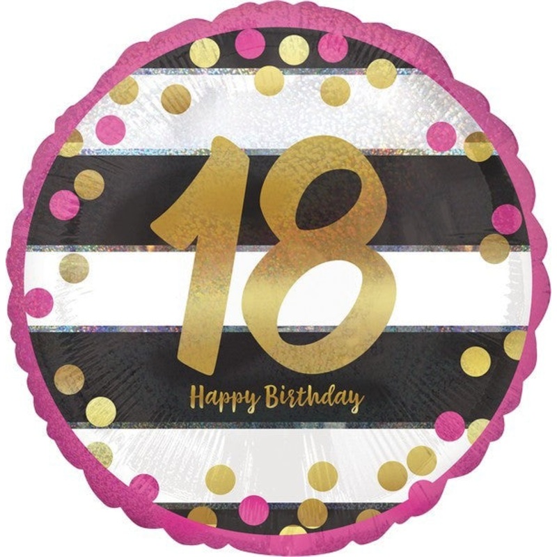 45cm Standard Holographic Pink & Gold Milestone 18 Balloon