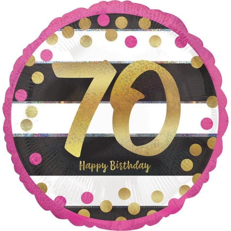 45cm Standard Holographic Pink & Gold Milestone 70 Balloon