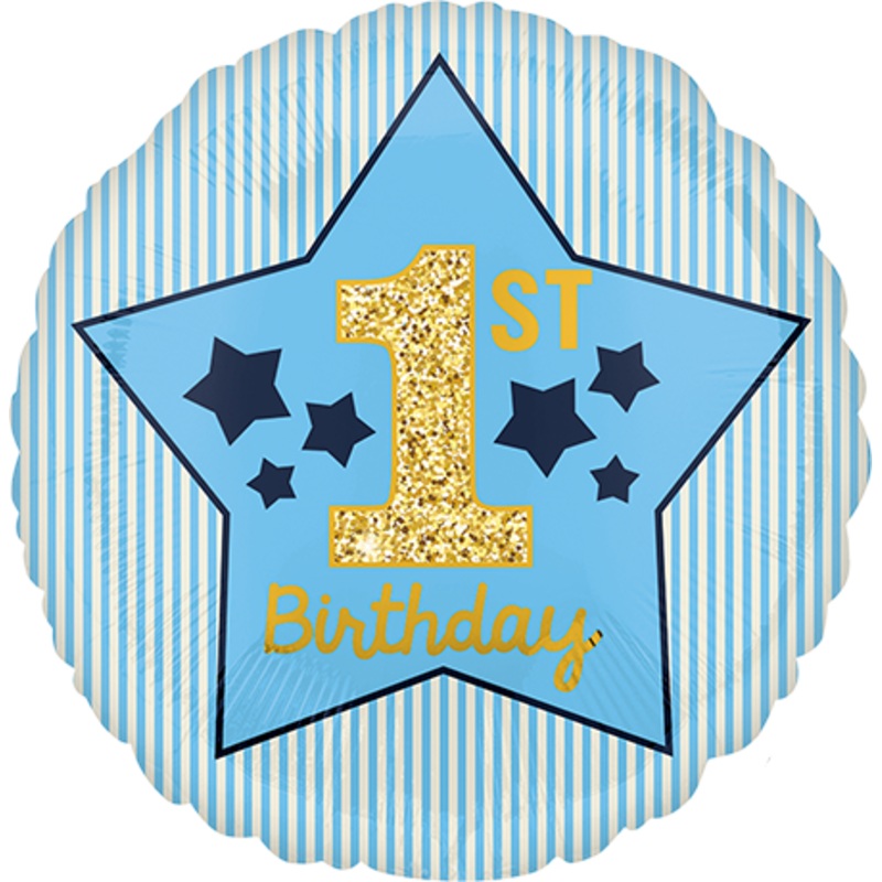 45cm Standard HX 1st Birthday Blue & Gold Boy Balloon