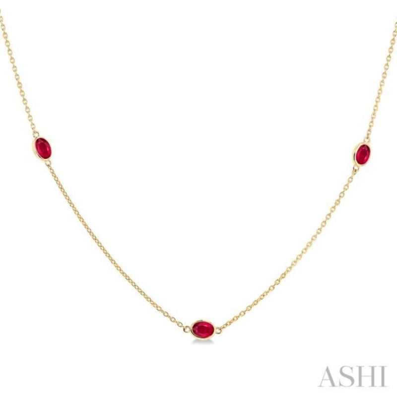 4×3 MM Oval Cut Ruby Precious Station Necklace in 14K Yellow Gold