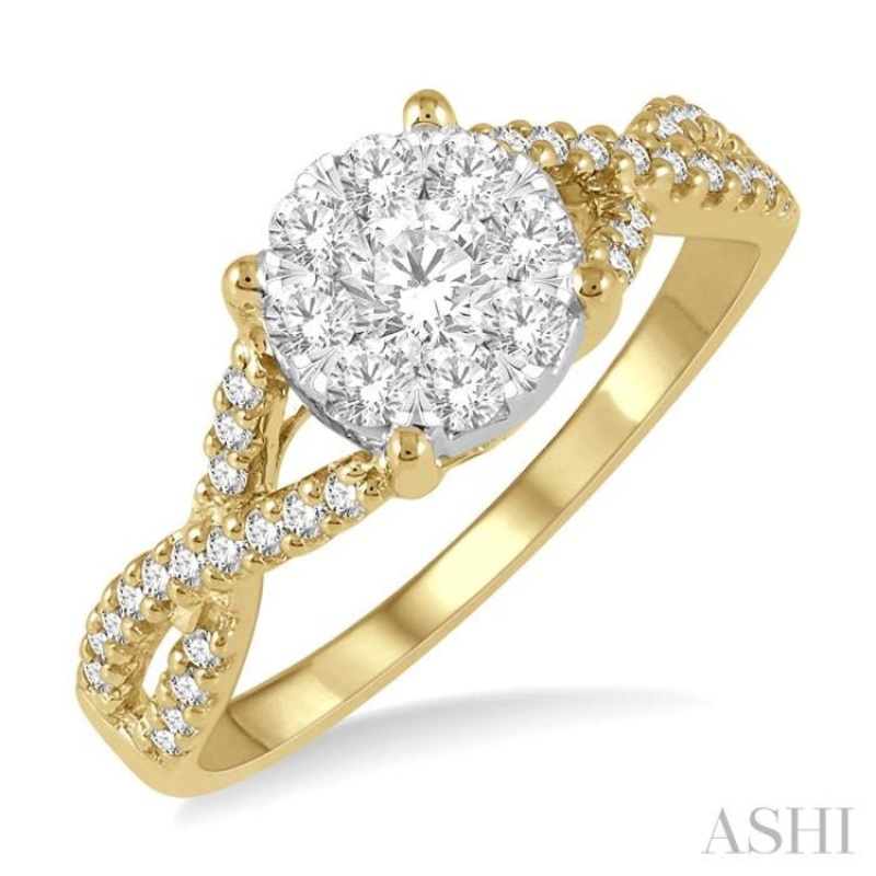 5/8 ctw Lovebright Round Cut Diamond Engagement Ring in 14K Yellow and White Gold