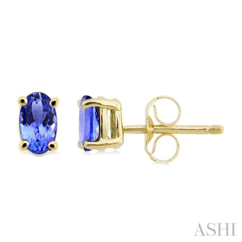 5×3 MM Oval Cut Tanzanite Stud Earrings in 14K Yellow Gold