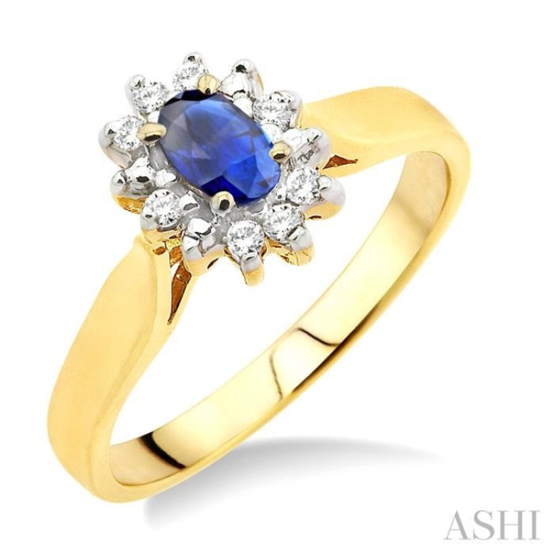 5x3mm Oval Cut Sapphire and 1/10 Ctw Round Cut Diamond Ring in 14K Yellow Gold