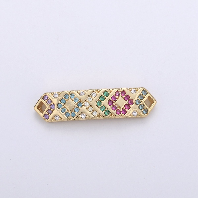 6x25mm 14k Gold Filled CZ Bar, Micro Pave Bar, Bracelet Bar, CZ Bracelet, Bracelet Connector, Colorful Cubic Bracelet Connector D-082