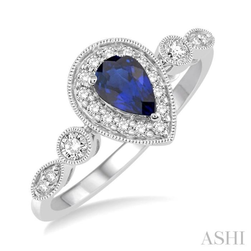 6X4MM Pear shape Sapphire Center and 1/4 Ctw Round Cut Diamond Ring in 14K White Gold