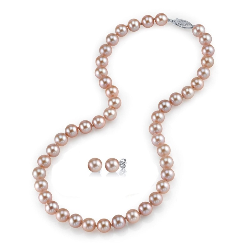 7.0-7.5mm Pink Freshwater Choker Length Pearl Necklace & Earrings