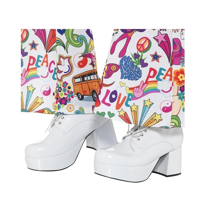 Item Includes:Shoes.Fit and Sizing:See size chart image for details.Please note: Bell bottoms are not included.Macho Macho Man!Shred the dance floor with our 70s Platform Mens Shoes. Featuring a pair of white 70s platform shoes, a great accessory for your
