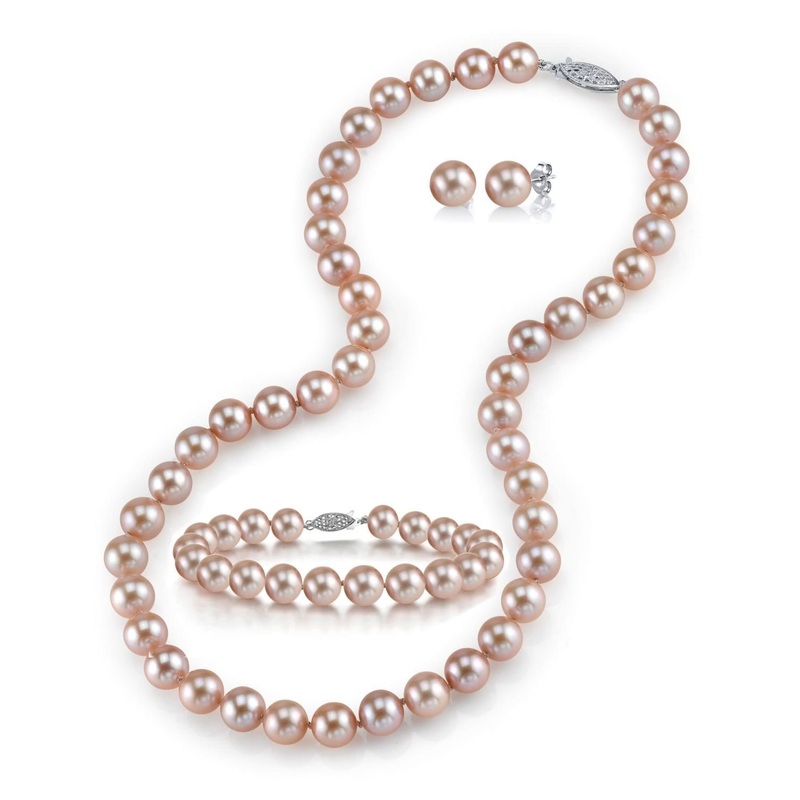 8.5-9.5mm Pink Freshwater Pearl Necklace, Bracelet & Earrings