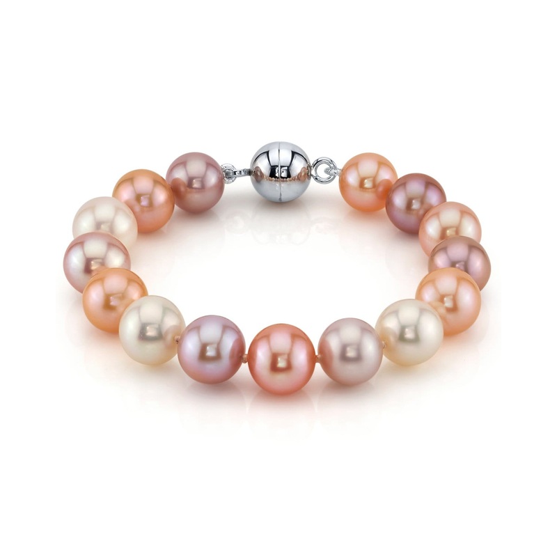 This exquisite bracelet features stunning 9.5-10.5mm multicolor freshwater pearls, highlighting the top 2-3% of harvest quality. You’ll appreciate the ‘Very High’ luster, which is the best you can find. The captivating mix of pink, peach, white, and lavender pearls brings a sophisticated touch to your collection. It’s a versatile accessory that complements both casual and formal attire effortlessly. Paired with a beautiful 14K white or yellow gold clasp, this piece adds a touch of elegance to any outfit.