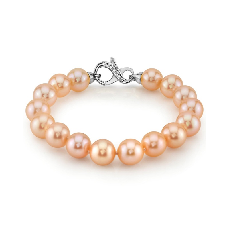 This stunning piece of jewelry features 9.5-10.5mm peach freshwater pearls that are simply captivating. You’re getting pearls of AAAA quality, known for their ‘Very High’ lusterour top grade in every aspect. The soft peach hue offers a touch of elegance, making this bracelet a versatile choice for any occasion. Pair it with one of our exquisite necklaces for a well-coordinated look.