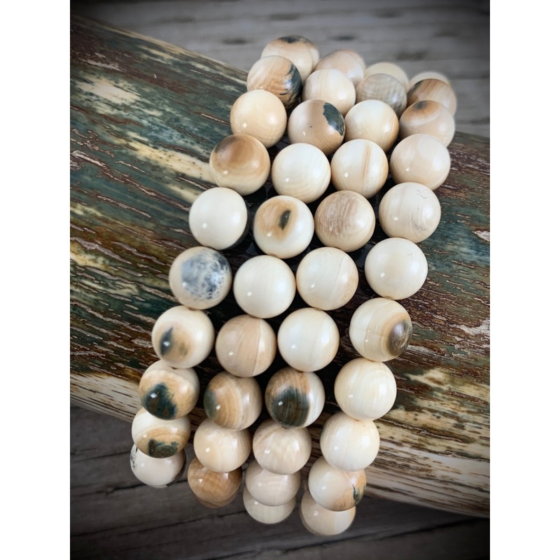 Mammoth Ivory is found in Alaska's permafrost and is Alaska's state fossilSize - 9mm Beads x 23 Beads per braceletThis bracelet is 7 1/2" lengthInformation card included
