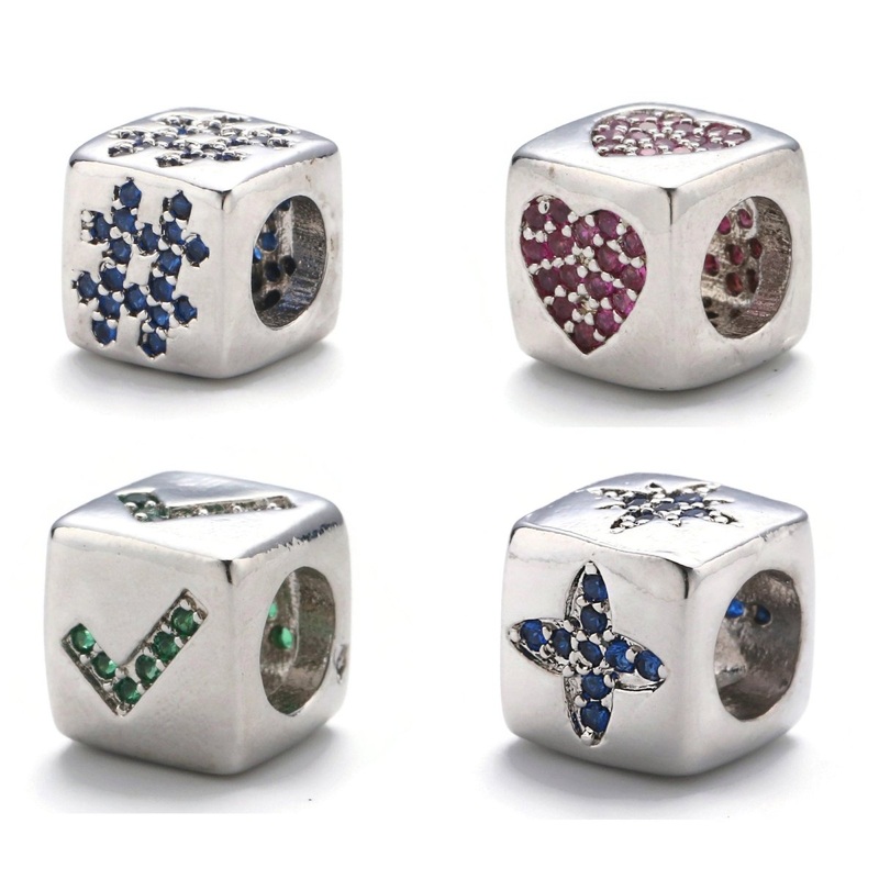 9x9mm CZ White Gold Filled Beads, hashtag # Beads, Heart Beads, Check Mark Beads, Star Block Charm for Making Bracelet Necklace Supply | B-243, B-244 Hashtag
