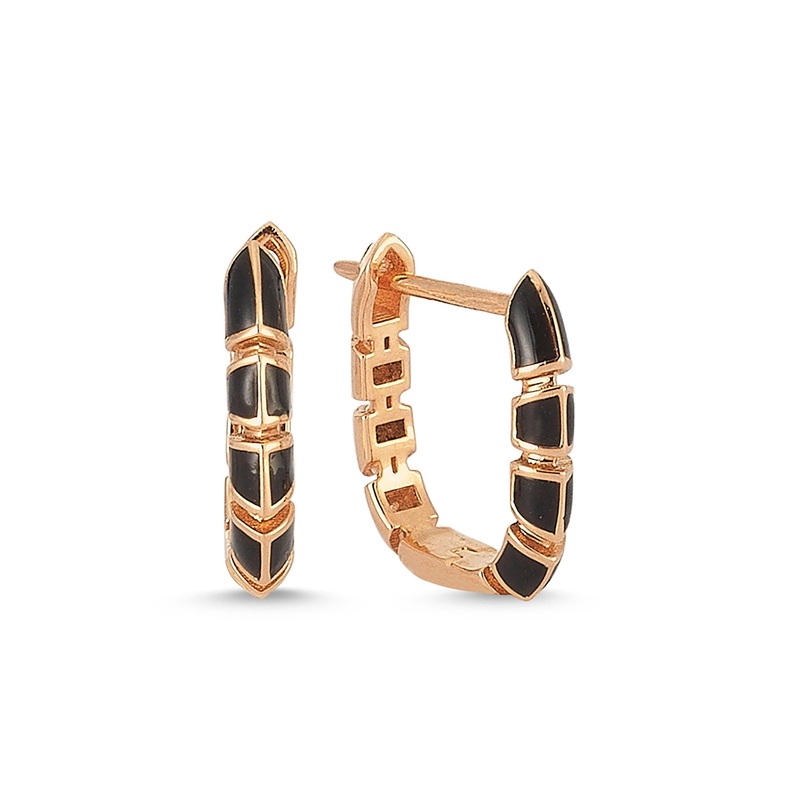TheAguna Earrings Smallare made from certified Fairtrade or recycled 14K rose gold and black enamel .The iconic Dragon Lady Collection fromSelda Jewellery is inspired by the fire element which represents our life energy. The main form of the collection is
