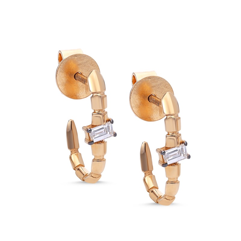 TheAguna Hook Earrings Smallare made from certified Fairtrade or recycled 14K rose gold, featuring responsibly sourced baguette white diamonds.The iconic Dragon Lady Collection fromSelda Jewellery is inspired by the fire element which represents our life e