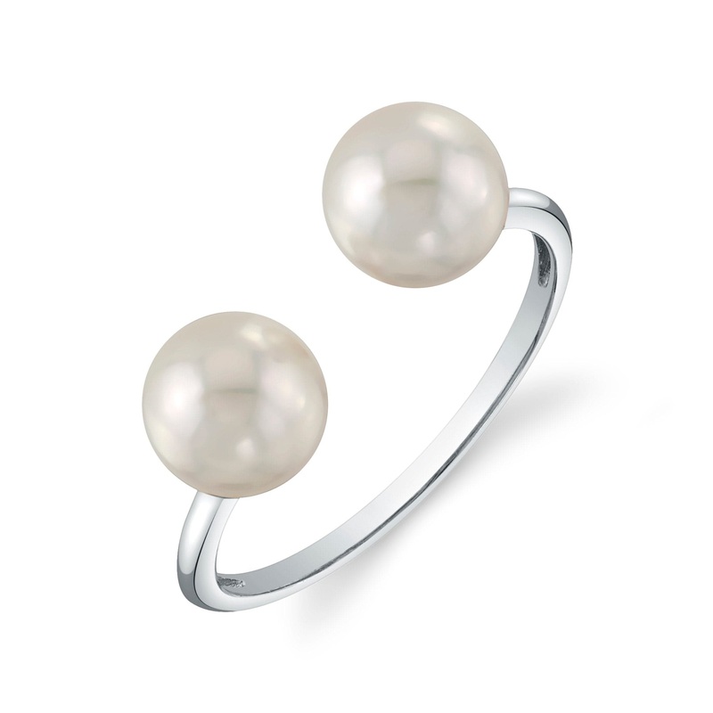 This exquisite ring features two 7.5-8.0mm Japanese Akoya pearls, handpicked for their radiant lusterThe pearls are mounted on the finest 14K goldThis item is packaged in a beautiful jewelry gift box