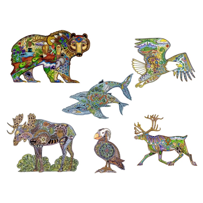 Cards inside: Grizzly Bear, Humpbacks, Eagle, Caribou, Puffin, Salmon, Orca, and Moose