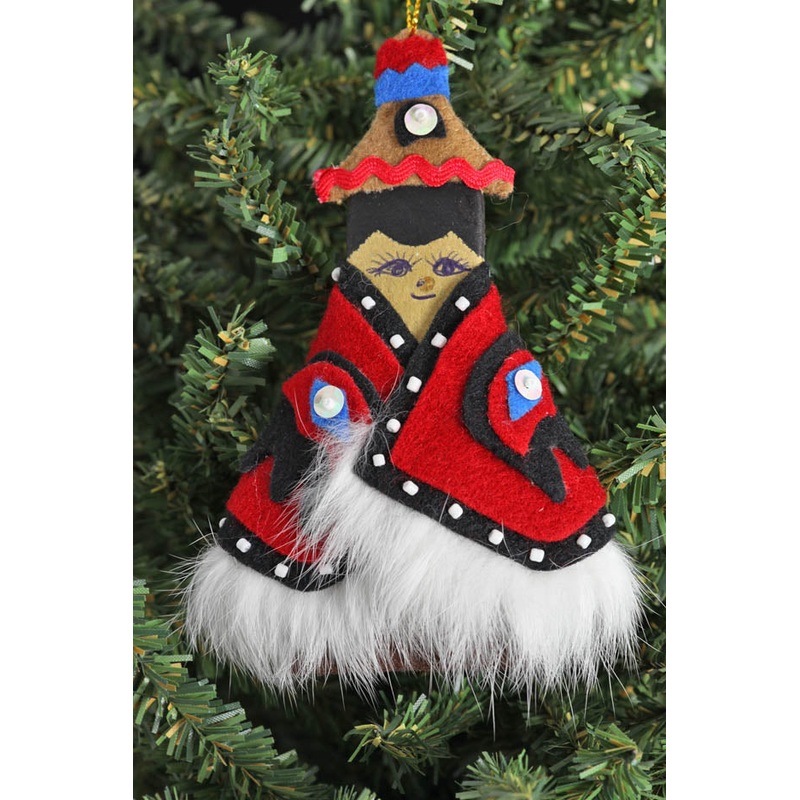 Alaska Tlingit Dancer- Felt Ornament with Rabbit FurSize – 5 1/2″H x 4″WColor may vary*
