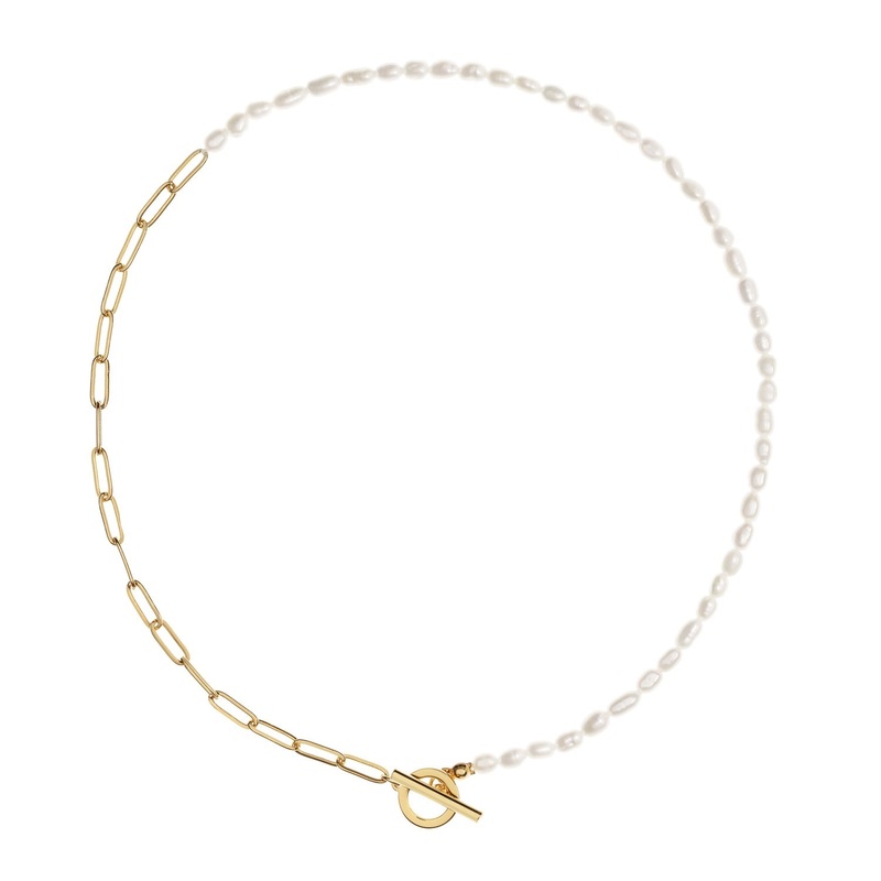 Alba Mixed White Pearl and Gold Chain Necklace