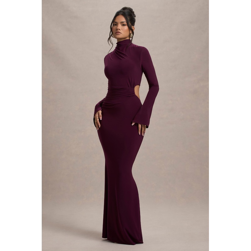 Anderson | Burgundy High-Neck Cut-Out Maxi Dress