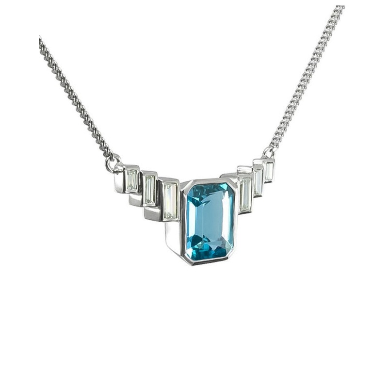 Platinum Perfection: The Art Deco Platinum Aquamarine Pendant is handmade in platinum, showcasing both the beauty and durability of this precious metal.