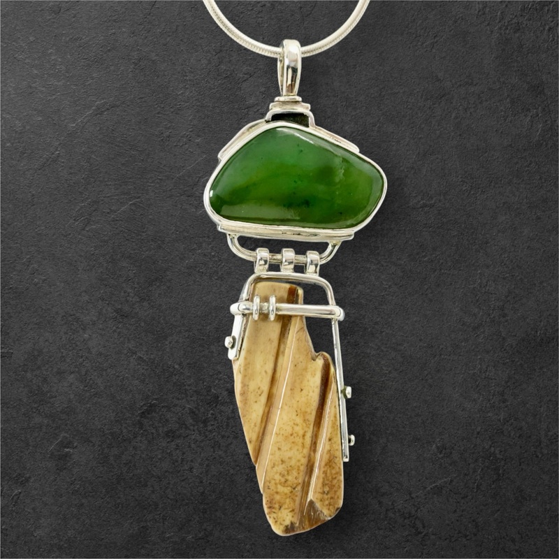 Fossil Walrus Ivory, Jade & .925 Sterling Silver Length – 3 1/4″One of a kind*Chains are available! Click Here!