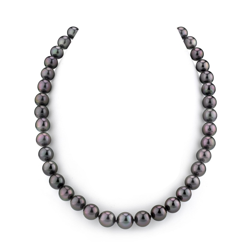 This stunning necklace showcases Tahitian pearls that possess the rare and captivating Aubergine, or Eggplant Purple, color. You’ll appreciate the dark charcoal grey body of each pearl, which serves as a perfect backdrop for the vibrant overtones of bronze and subtle peacock hues. Each pearl is perfectly round, and the AAAA quality shines through in the 9.0-11.0mm size. You’ll find that these pearls are individually double-knotted on matching black silk, finished with a luxurious 14K gold clasp of your choice. Plus, each necklace comes beautifully nestled in our signature Little Black Jewelry Box.