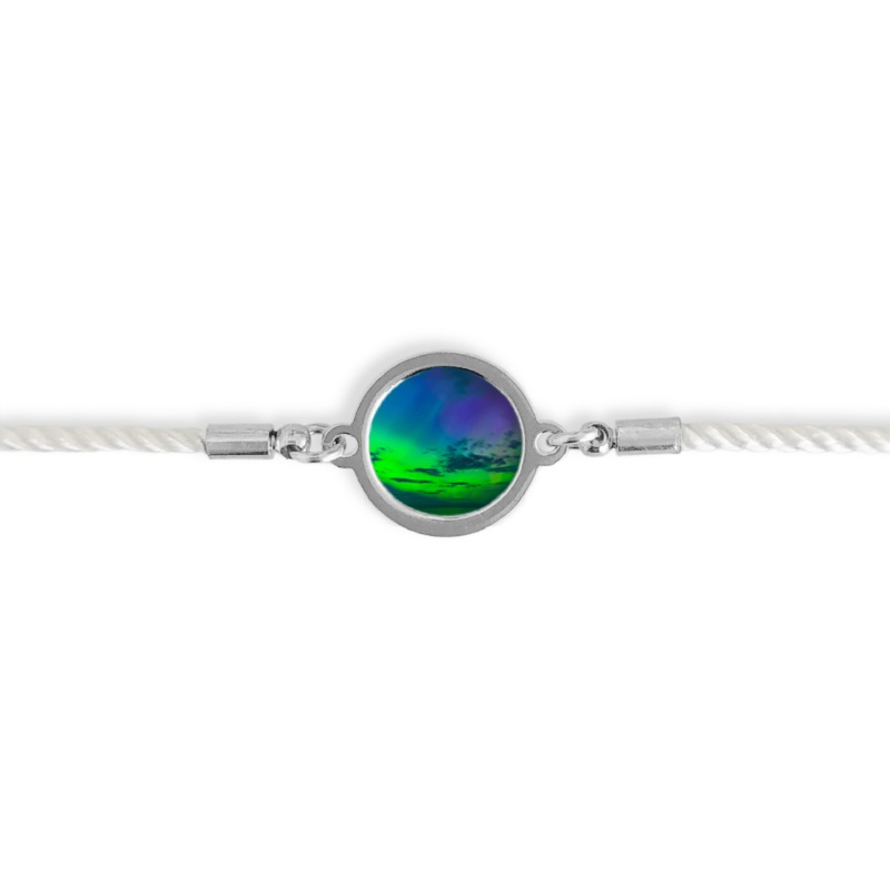 Northern Lights Bracelet:Immerse yourself in the enchanting spectacle of the Northern Lights with this exquisite bracelet featuring a captivating image of the green aurora borealis over the Great Lakes. This bracelet perfectly captures the vibrant, etherea