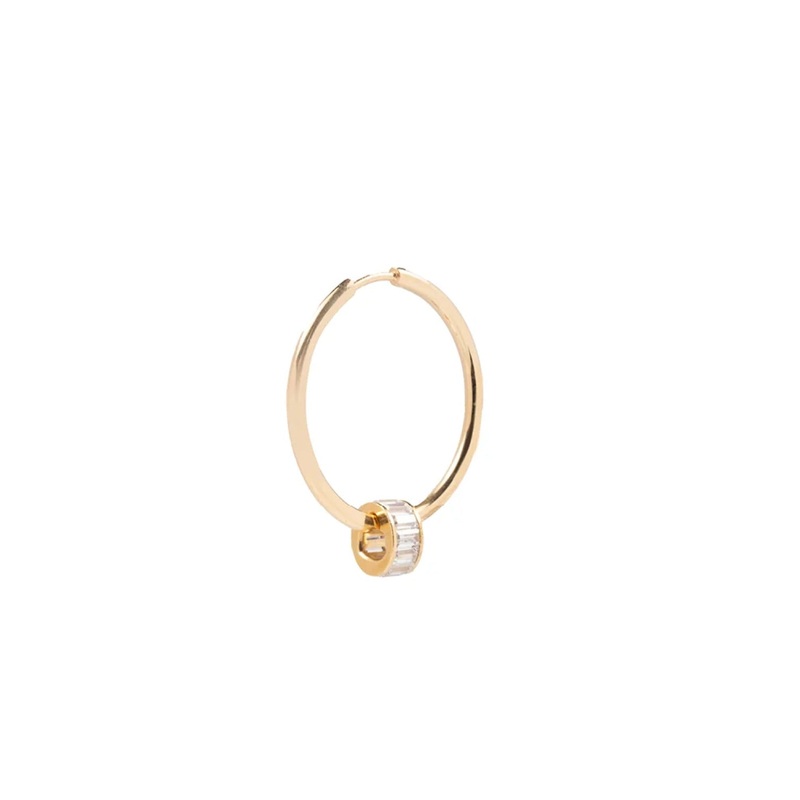 DescriptionHandcrafted in 18k yellow gold, this Heart Beat Earring features our Large Hoop paired with our Baguette Heart Beat which features baguettes all the way around. A perfect addition to your story. The opening of each Heart Beat has a heart silhoue