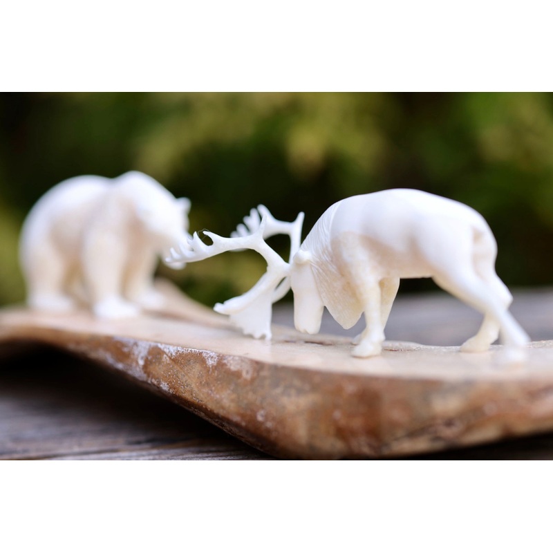 Walrus Ivory Carving on Walrus Jawbone Base Alaskan Native artist Leonard Savage Size – 9 x 2 1/4 x 2 LxWxH One of a kind *Can only be shipped within the USA