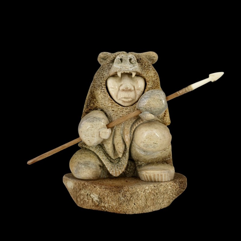 Alaskan Whale Bone Carving with Walrus Jawbone & Ivory featuresSigned by ArtistSize - 4"H x 6"W x 4"D*This item can only be shipped within the USA