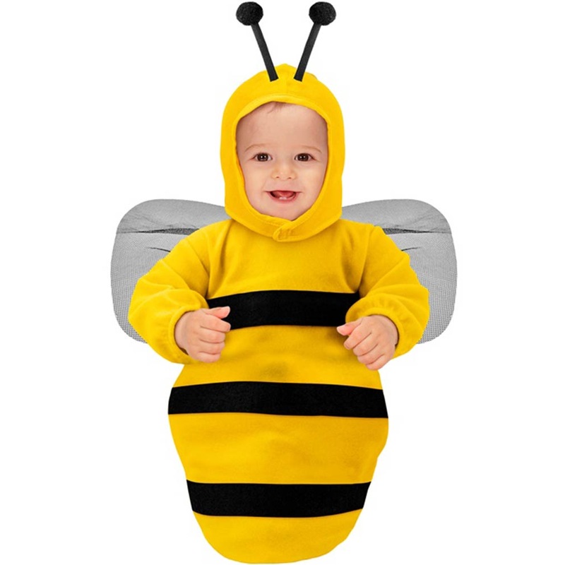 Item Includes:Bunting.Headpiece.Features:Yellow bunting with black stripes.Grey fabric wings on the back.Yellow headpiece with black antennae.Fit and Sizing:One size fits most infants aged 0-9 months.Fabrics and Care:100% Polyester.Hand wash, hang dry.Buzz