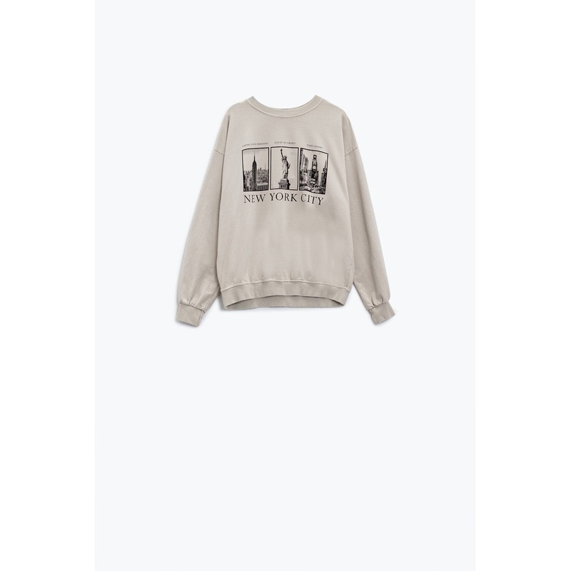 Beige Long-Sleeved Sweatshirt With New York City Printed