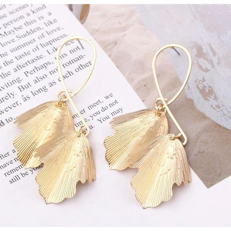 Fun & trendy. Two separate large leaves hang lose to provide movement. Gold plated. Post back.