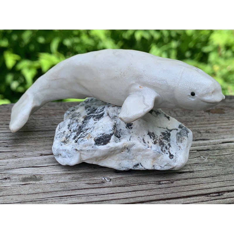 (Fimo Clay) Polymer Sculpture by Joan Kautzer Made in Alaska with Beach Rock BaseDimensions (including base):Height: 2.25" in. - Length: 4.5" in. - Width: 2.75" in. *Each Sculpture is individually handcrafted, Size and pose will vary.