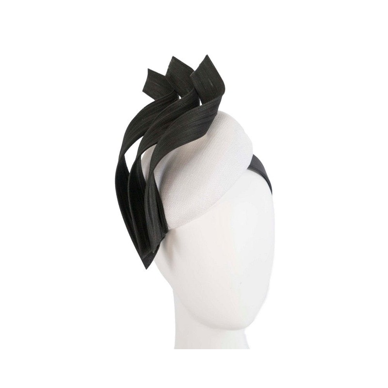 Our milliners created this masterpiece from best materials available. Classic white pillbox, embellished with three black jinsin ribbons. It will be a highlight of your Melbourne Cup or any racing event outfit. Made in Australia Renown Fillies Collection b