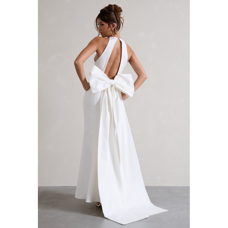 Bestow | White Open-Back Maxi Dress With Oversized White Bow