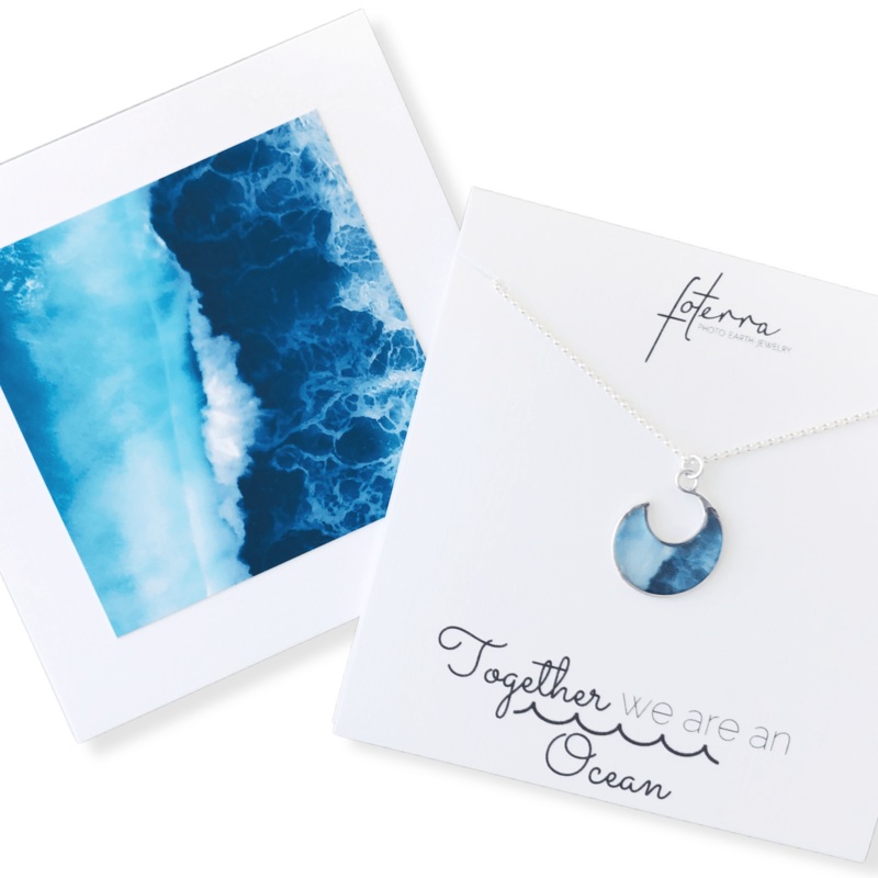 TheBig Ocean necklaceis a stunning piece of jewelry that captures the beauty and power of the ocean. Featuring an aerial photograph of waves crashingroaring in the deep, this necklace is sure to make a statement. Made of quality metals, the Big Ocean necklace is the perfect way to show your love for the sea.