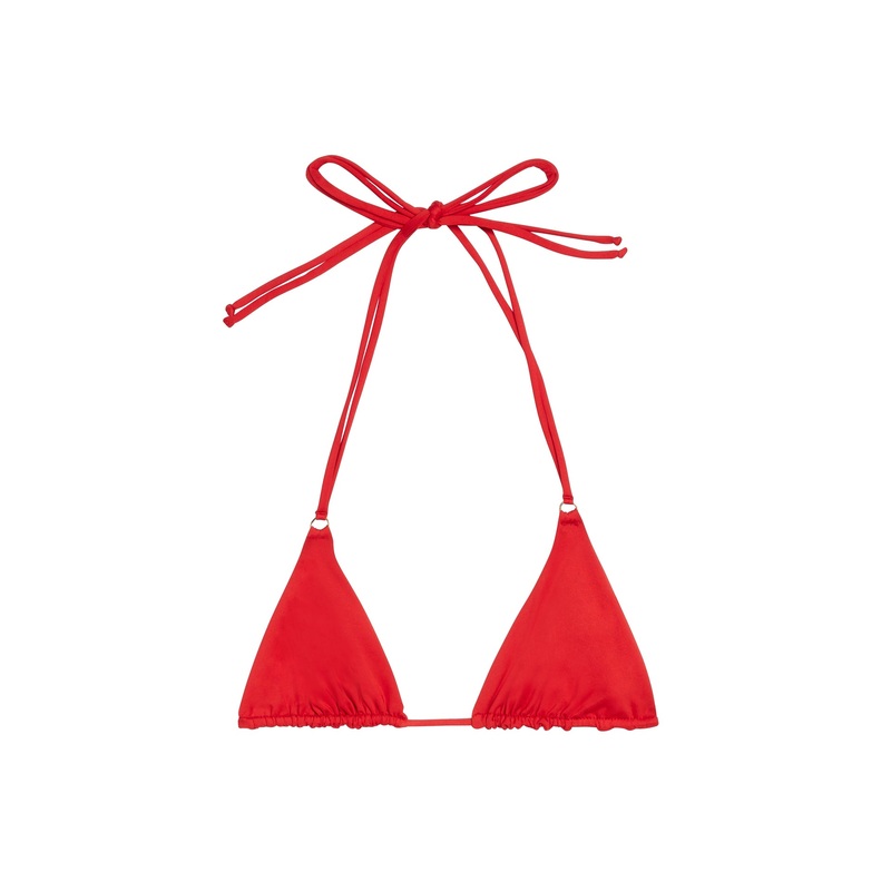 ***Questions on sizing? See our fit guide! ***Classic essential triangle top featuring minimal loop accentsAdjustable underbust. Ties around the neck and back.One of our most loved pieces and best-selling classic.85% Nylon15% ElastaneMade in MEXICO