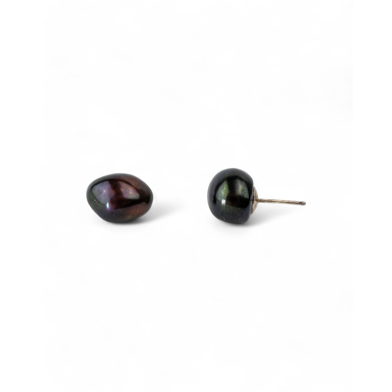 The Black Baroque Pearl Gold Stud Earrings are a classic and timeless addition to your jewellery collection.Black Pearls: The 12mm black pearlshave a classic and sophisticated charm, adding elegance to your look.Secure Gold Posts and Scrolls: These Black B