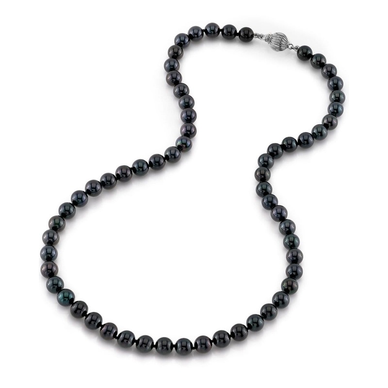 Add a touch of elegance to your collection with this stunning necklace featuring Black Akoya pearls. Each pearl showcases rich, deep tones, with beautiful Midnight Blue and Greenish-Black overtones that will surely catch your eye. Made from AA+ Quality pearls ranging from 6.5-7.0mm, this piece is crafted to your specifications. You can select your preferred lengthoptions include 16, 18, 22, 24, 36, and 51 inches. We can accommodate custom lengths as well! Each necklace comes with a choice of 14K Gold Clasp, is double-knotted on matching black silk, and arrives in a lovely Presentation Box alongside a Certificate of Authenticity.