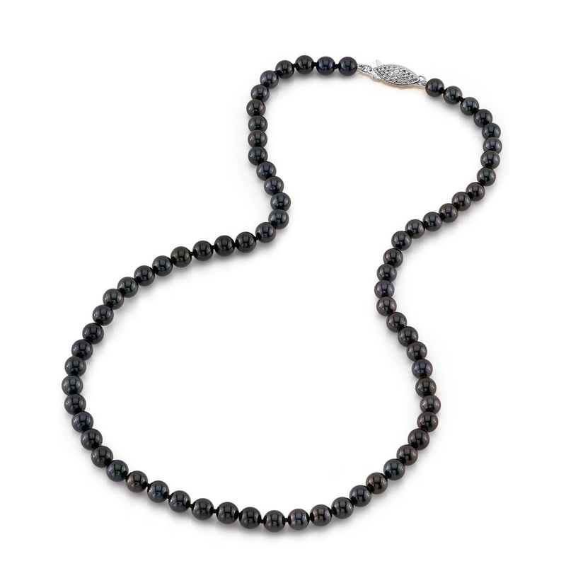 This exquisite black Akoya pearl necklace features pearls ranging from 5.5-6.0mm, each boasting a brilliant luster and a pristine surface. Crafted with care, each AA+ quality pearl is perfectly round and delicately double-knotted with black silk thread, ensuring durability and elegance. You’ll appreciate the beautiful 14K gold clasp that complements the overall sophistication, providing a touch of luxury that fits perfectly into your upscale lifestyle.