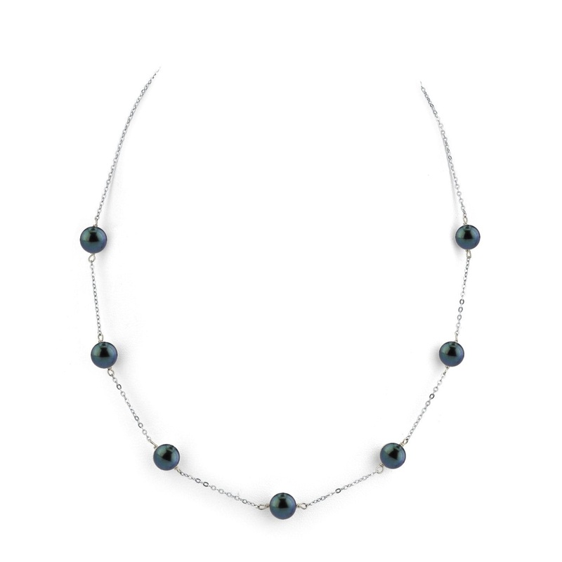 This elegant necklace features exquisite black Akoya pearls that are color-treated for a stunning effect. These pearls display unique overtones, ranging from midnight blue to a greenish-black hue. Mounted on luxurious 14K gold, this piece offers a refined touch to any outfit. You’ll appreciate the rich luster and quality of these AA+ pearls. If you’re looking for something even more exceptional, consider upgrading to AAA quality pearls for an additional fee.