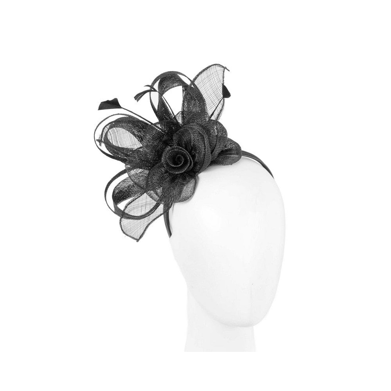 Black hand made sinamay flower with addition of soft feathers and headband. This elegant fascinator is a perfect choice for any racing meeting. Designed in Australia Posh Max Alexander brand Sinamay flower headband