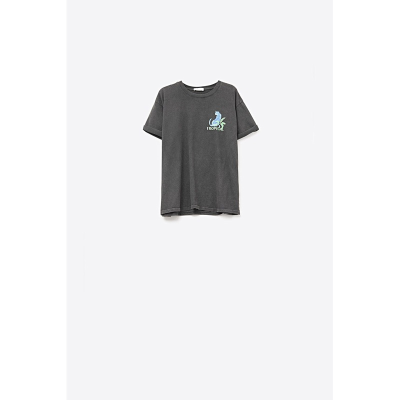 Black T-Shirt Made In Italy With Tropical Graphic Print