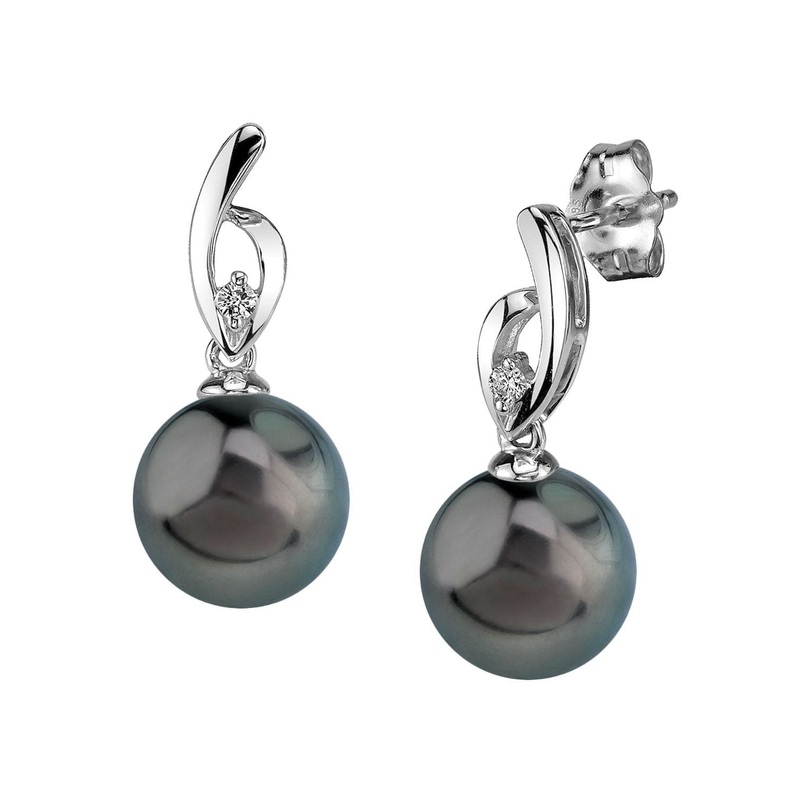 Black Tahitian Pearl & Diamond Asterie Earrings