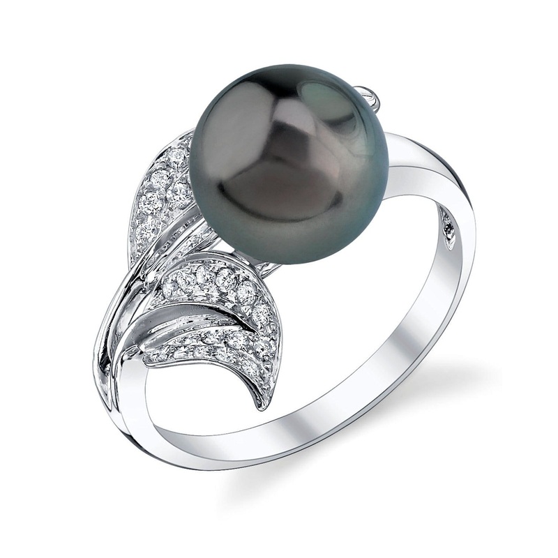 This stunning piece features a beautiful Tahitian pearl, hand-selected for its sharp, crisp luster and vibrant natural overtones. At 9.0-10.0mm, the pearl is elegantly mounted on a solid 18K gold ring that showcases a graceful leaf motif. To enhance its beauty, the ring is accented with sparkling SI clarity diamonds weighing approximately 0.25cttw. You’ll find this exquisite jewelry piece to be a perfect reflection of your sophisticated taste and a beautiful addition to your collection.
