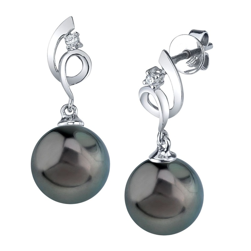 Black Tahitian Pearl & Diamond Pirouette Earrings